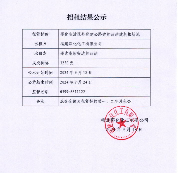福建邵化工无限公司修建物园地招租告诉布告